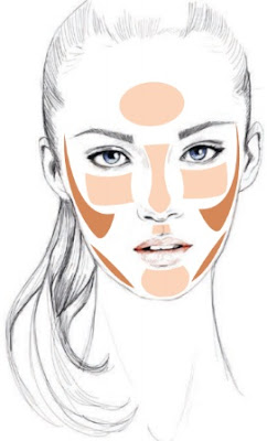 2. Ilumine, acrescentando um toque de iluminador no centro da testa, no topo do nariz, nas maçãs do rosto, na curva do lábio superior (arco do cúpido) e no centro do queixo. (Claro que aqui também tem de haver bom senso, não vamos aplicar iluminador com brilhantes abaixo dos olhos, como fazemos nas maças do rosto. Deve apenas utilizar um corretor de olheiras 1 ou 2 tons abaixo do tom da base de forma a ficar mais claro e iluminado. Pois iluminar o rosto, não tem de se necessariamente colocar "brilhantes" ou pós shimmer)